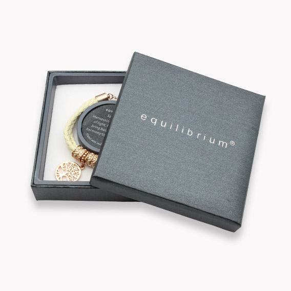 Das Equilibrium Armband Lebensbaum ist ein geflochtenes Armband, hochwertig verarbeitet mit einem Anhänger aus Messing rhodiniert und kleinen Schmuckkristallen. Das Armband ist in 4 Farbvarianten erhältlich und ist sehr ansprechend in einer hochwertigen Geschenkbox verpackt. Es eignet sich damit auch hervorragend als Geschenk.