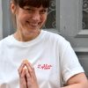 Nicki trägt L auf dem Bild. Sie ist 170 cm groß.