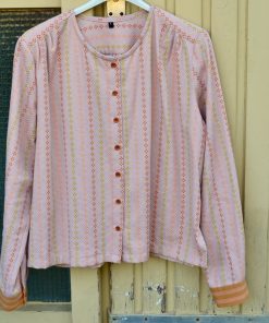 Ebenso haben wir die Ärmelbündchen mit jeweils einem kleinen Knopf ausgestattet und aus der gleichen Kollektion einen hübschen Streoifenstock dafür verwendet.