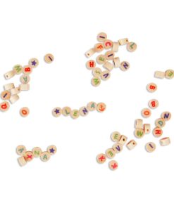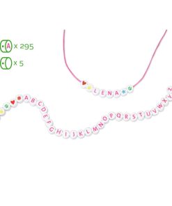 Buchstaben-Fädelperlen aus Holz, zum Aufziehen auf Bindfaden, ca. 300 Stück, entweder in Bunt-Natur oder Rosa-Weiss.