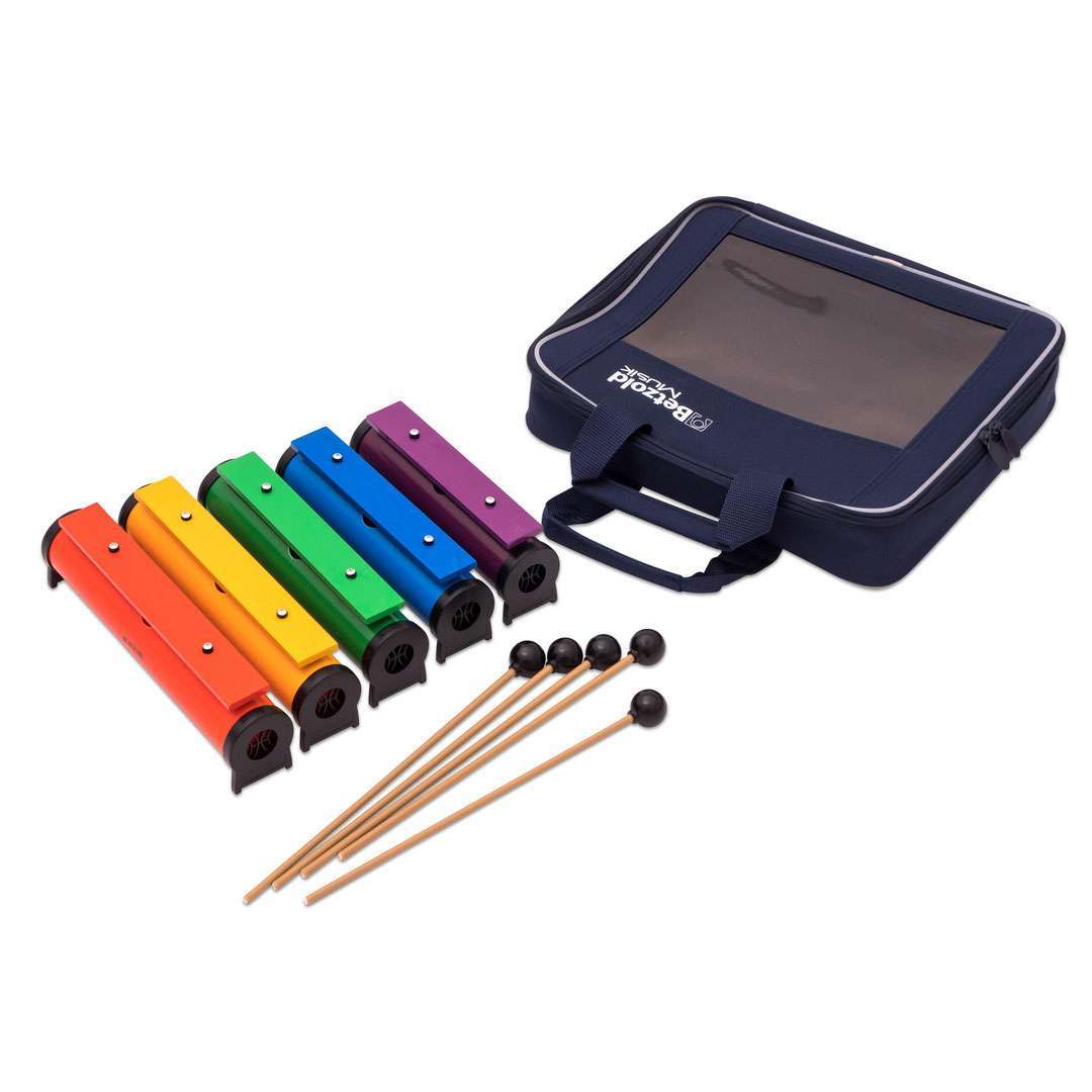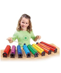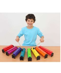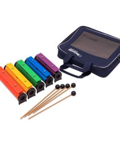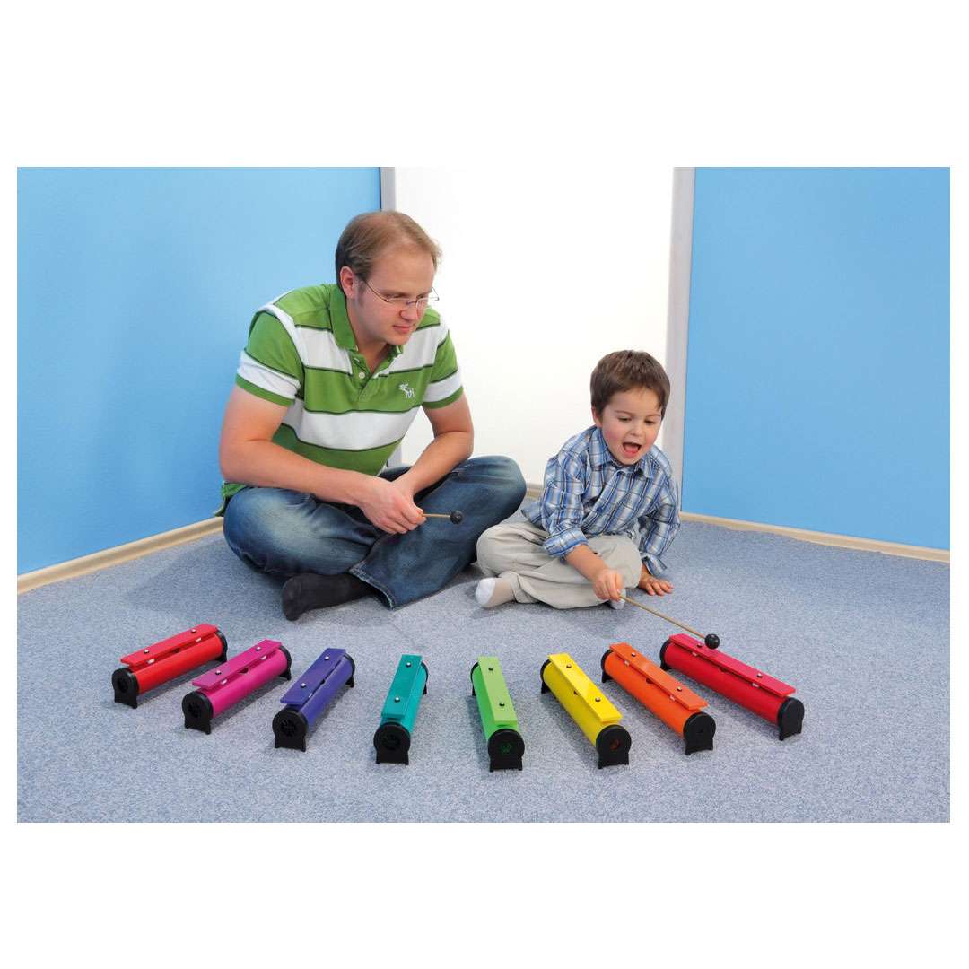 Diese Klangbausteine haben rein gestimmte Klangplatten aus Metall, die auf einer Resonanzröhre aus Kunststoff befestigt sind, die den Ton kristallklar wiedergibt. Diese Resonanzkörper haben seitlich ein Loch, was ihnen einen kraftvollen Sound verleiht und den Klang optimal entfalten lässt.