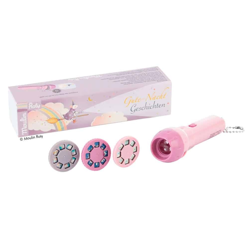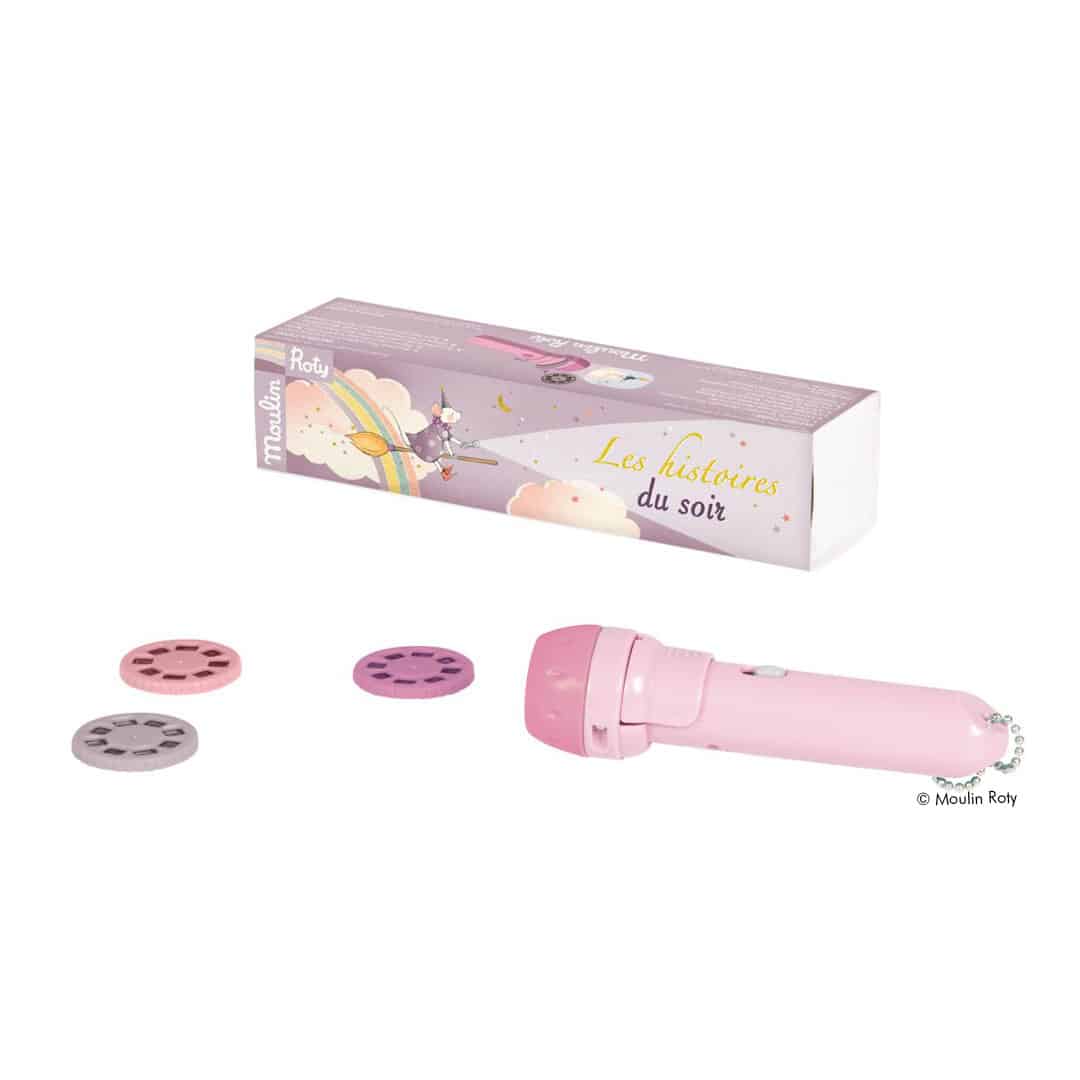 Diashow-Taschenlampe mit 3 Märchen-Geschichten mit der Zaubermaus zum An-die-Wand-projizieren und Erzählen, von Moulin Roty.