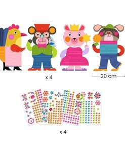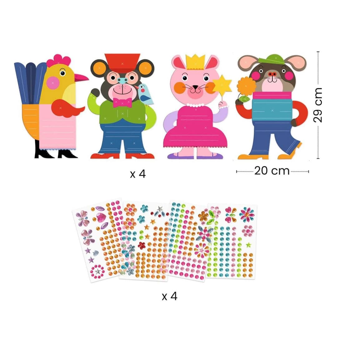 Kreativ-Set Sticker 3-6: Stickerbilder „Glitzer“, mit 4 lustigen Tieren zum Dekorieren mit glitzernden Strass-Steinen,