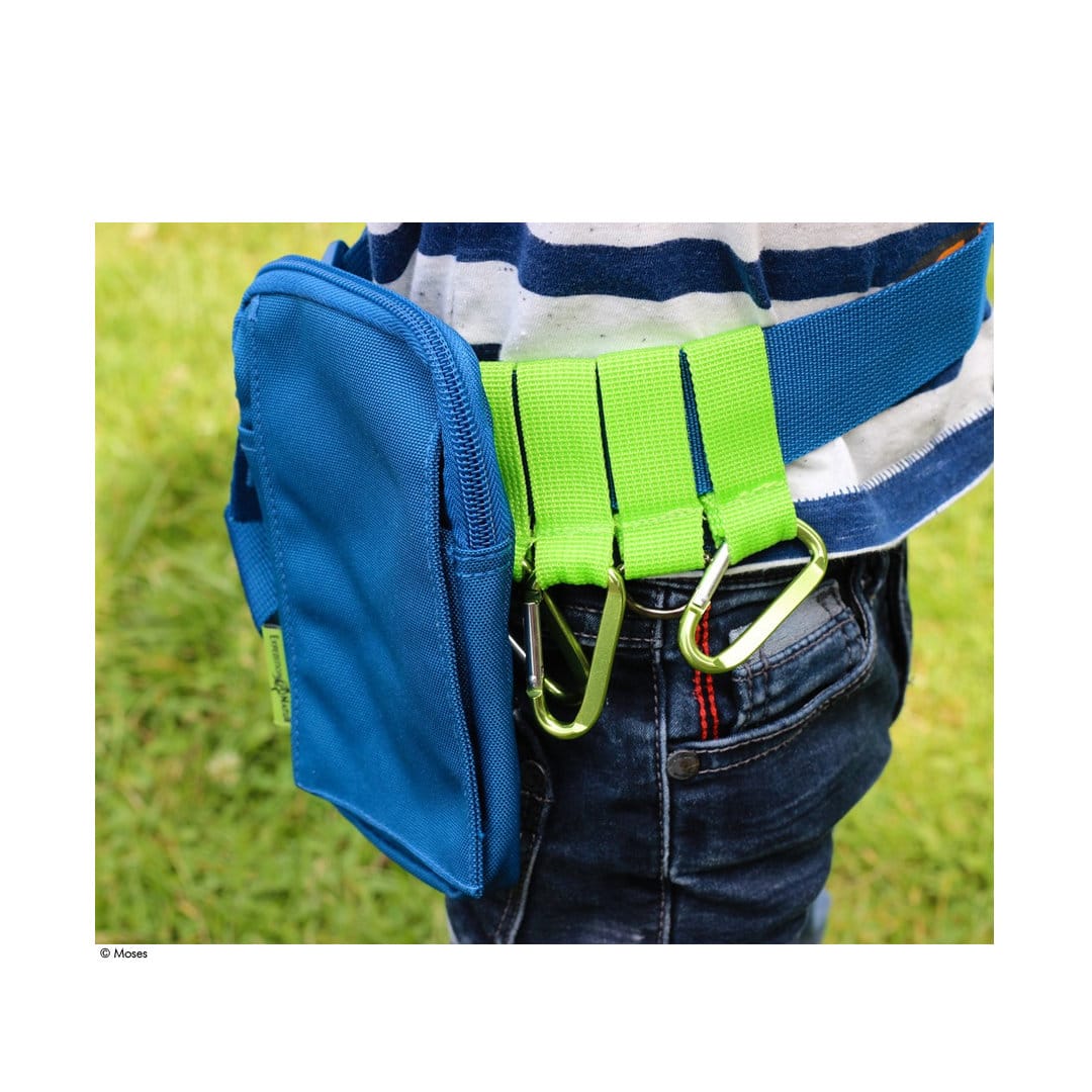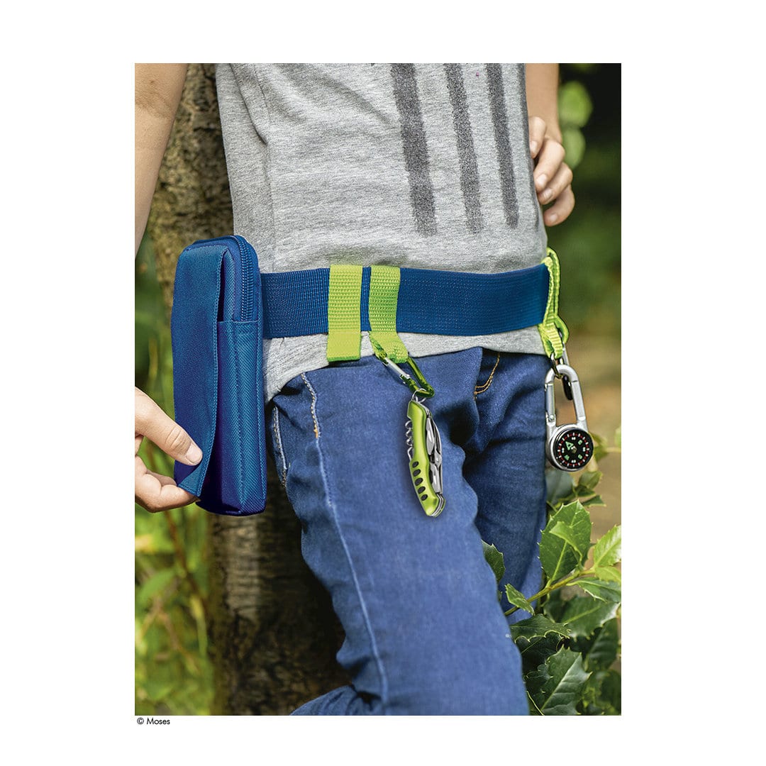 Dieser handliche Outdoor-Gürtel bietet viele Möglichkeiten, alles sicher zu verstauen, was Kinder bei ihren Entdeckungs-Streifzügen durch die Natur benötigen und was bei keinem Ausflug fehlen darf.