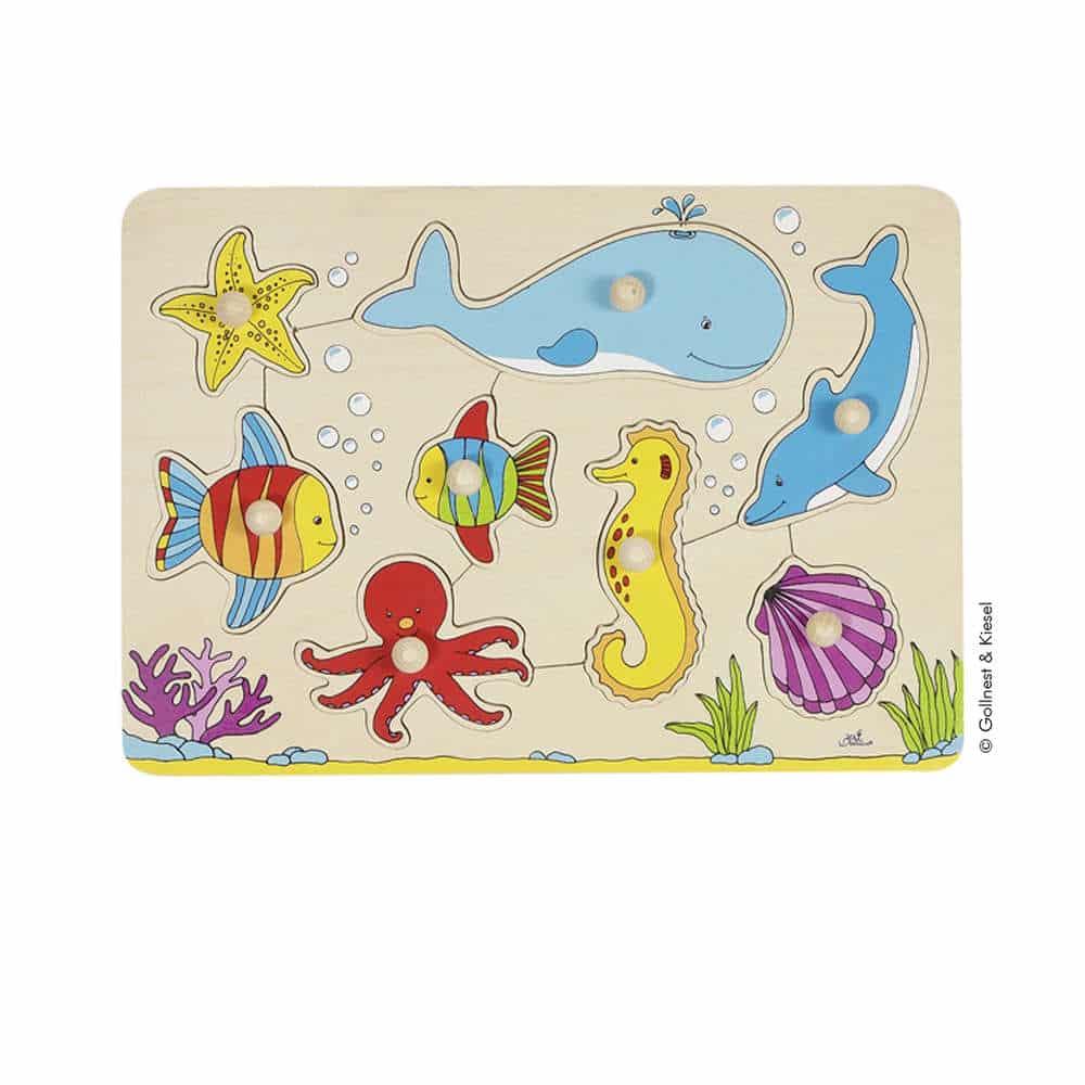 Puzzle mit 8 Tieren aus der Unterwasserwelt – mit großem Griff zum Stecken, von Goki.
