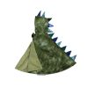 Gefährlich soll er sein, der grün-glänzende Drache mit Drachengesicht auf der Kapuze, dem Drachenschwanz und dem gelb-gezackten Rückenaufnäher. Doch er ist auch wirklich ein drolliger kleiner Gefährte, dieser Drache als Cape für Kleinkinder. Ein perfektes Karnevals- oder Faschingskostüm!