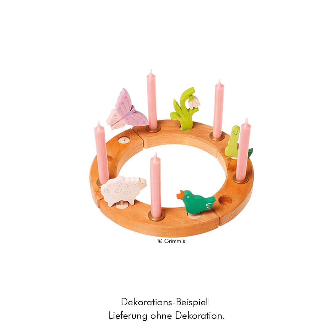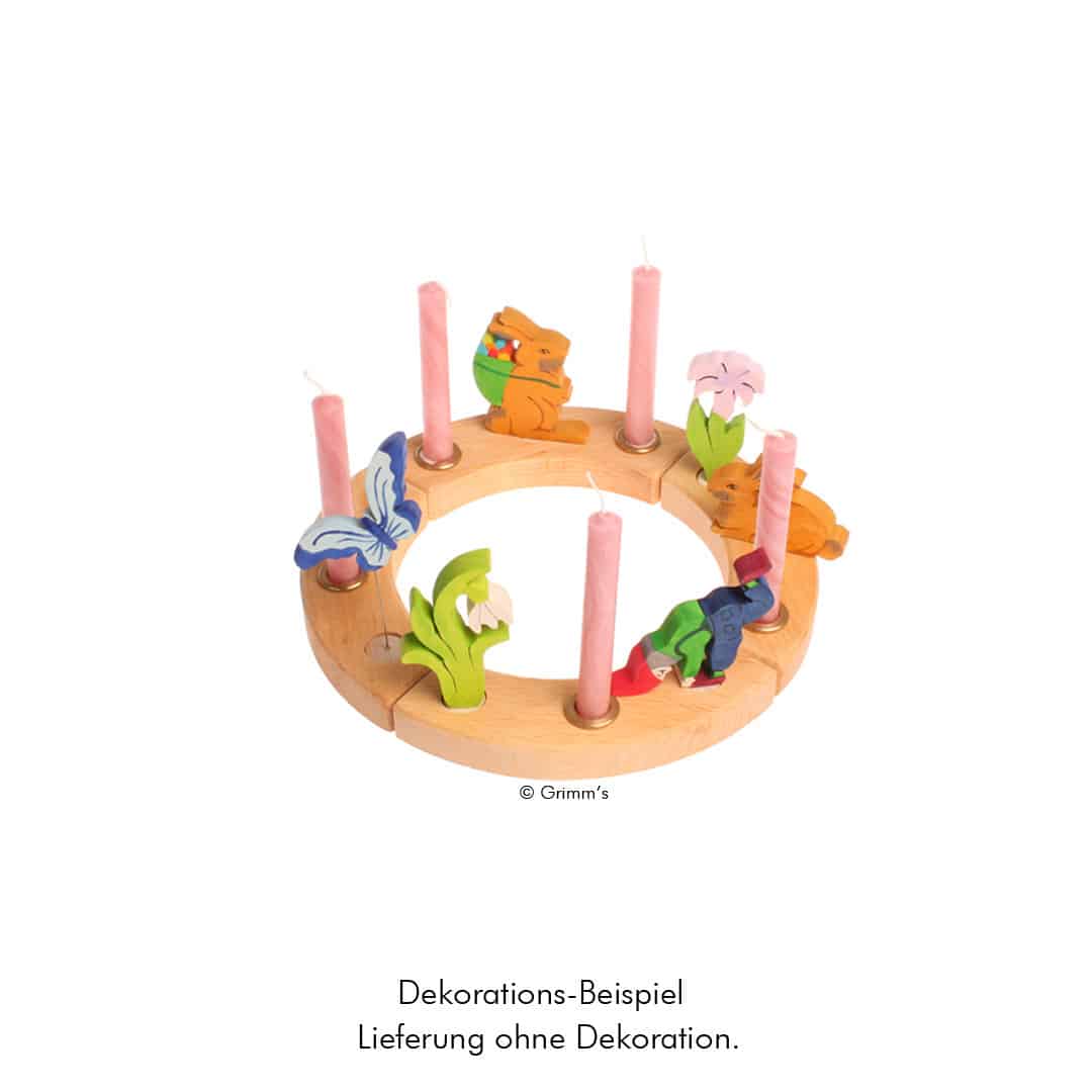 Als wunderschöne und abwechslungsreiche Tischdekoration haben sich die Geburtstagsringe von Grimm’s Spiel und Holz Design bewährt. Sie sind beliebig kombinierbar, durch ihre Aufteilung in vier Elemente können sie entweder als kompletter Ring angeordnet werden, oder aber es kann ein Halbmond entstehen oder nur ein einzelnes Element aufgestellt werden.