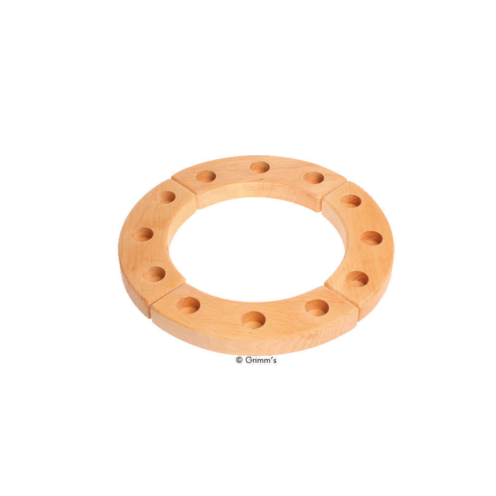 Grimms Geburtstagskranz oder Festtagsring Natur für 12 Stecker, mit 4 Elementen und jeweils 3 Steckmöglichkeiten, aus naturbelassenem, geöltem Ahornholz.