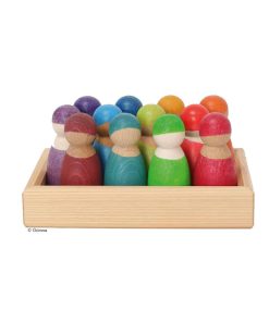 Jede Holzfigur der 12 handbemalten Regenbogen-Freunde von Grimm ist einzigartig! Die Figuren haben unterschiedliche Farben und werden aus verschiedenen, typisch heimischen Hölzern Mitteleuropas angefertigt. So sind sie nicht nur individuell bemalt, sondern jede Figur ihren ganz eigenen Ausdruck und eine individuelle Maserung! So wird Kreativität und Phantasie beflügelt und beim Spielen mit diesen Figuren wird von den Spielenden jede Stimmung, jede Herkunft, jeden ganz eigenen Ausdruck den Figuren verliehen.