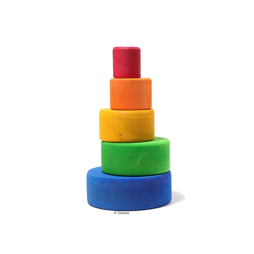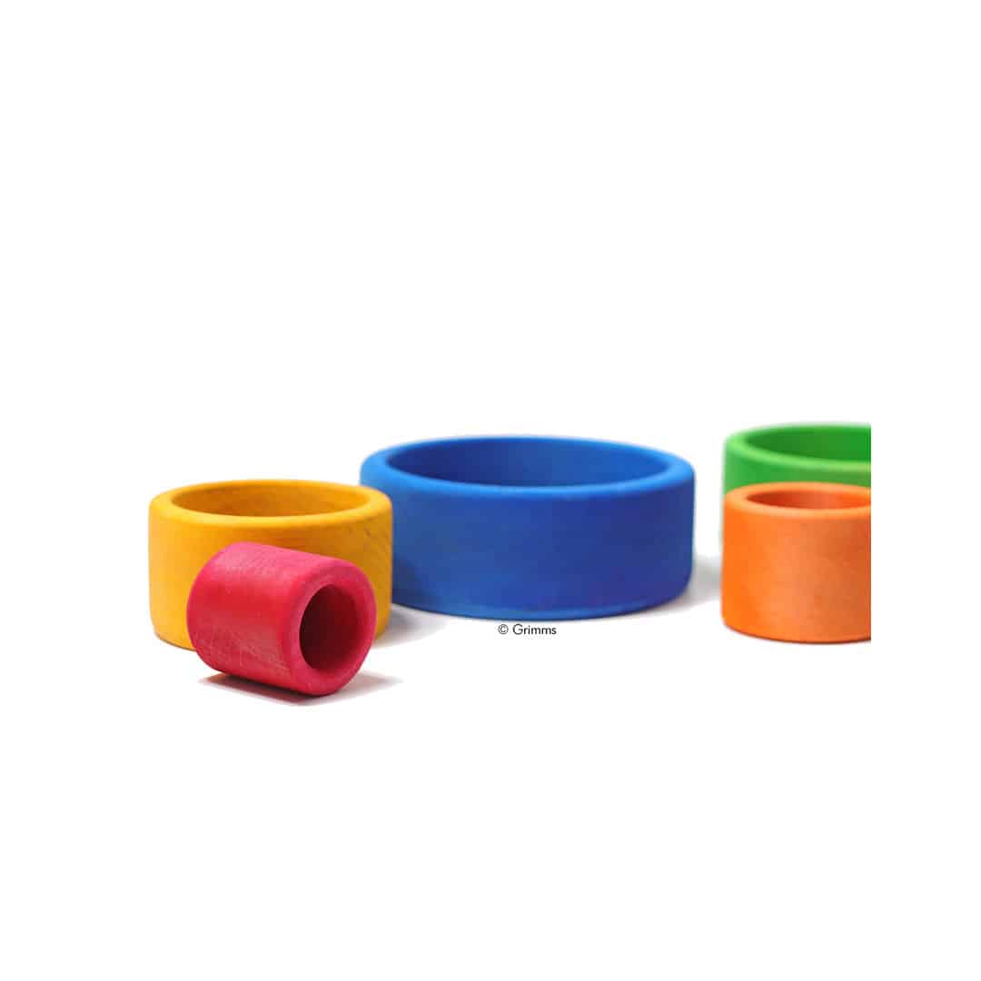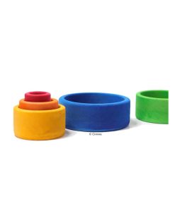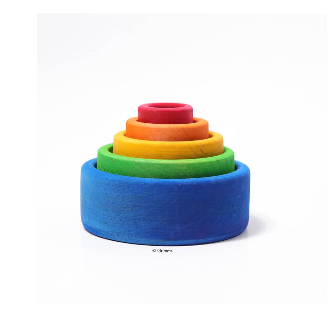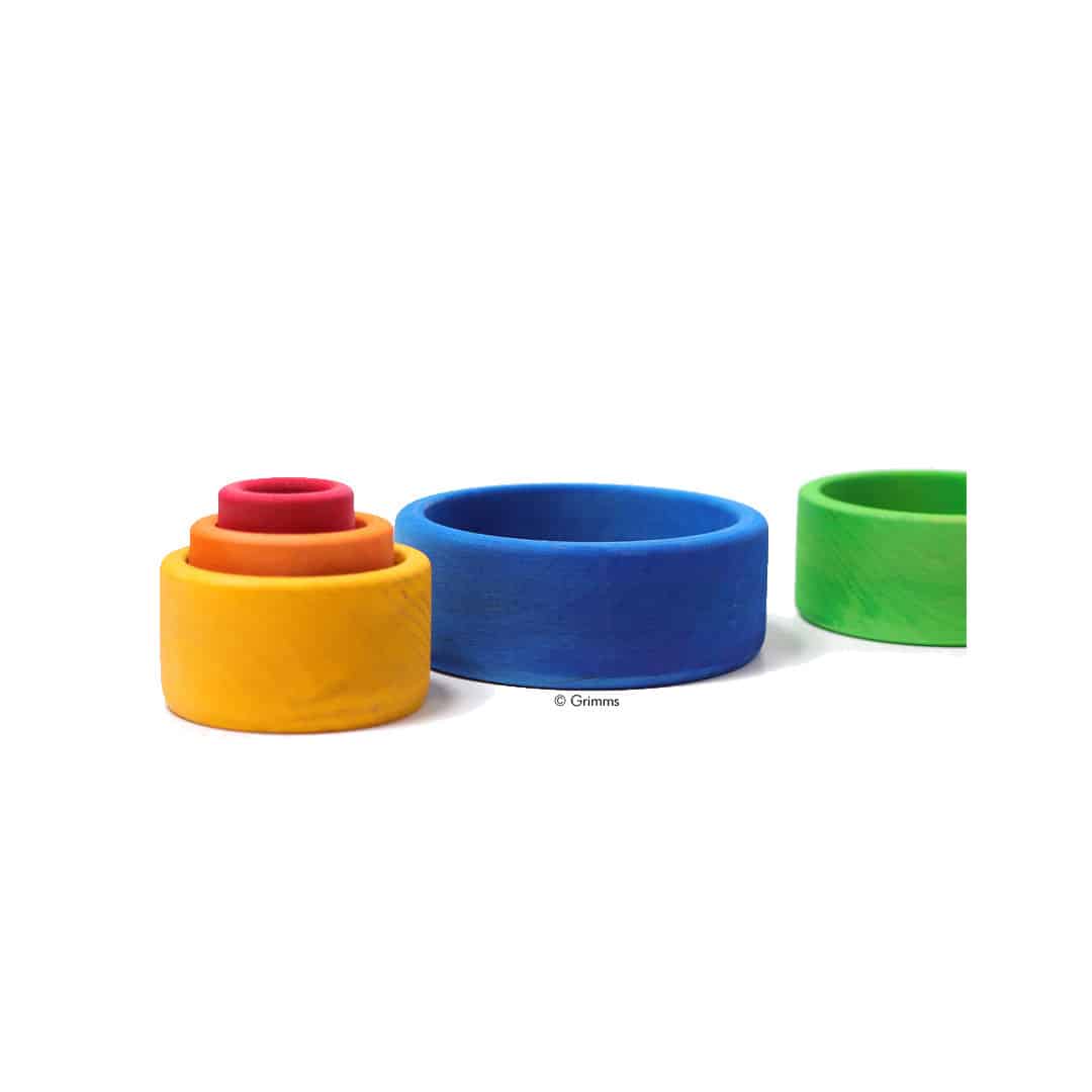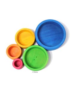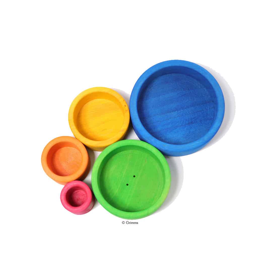 Grimm’s Schälchensatz ist eine wunderschöne, hochwertig gearbeitete Variante der klassischen Stapelbecher-Sets. Die kleinen Schälchen können als Aufbewahrungsschalen für Perlen und andere Gegenstände ebenso gut verwendet werden wie – in den ersten Lebensjahren – zum Stapeln und Türme bauen, sowie zum ineinander Stecken…