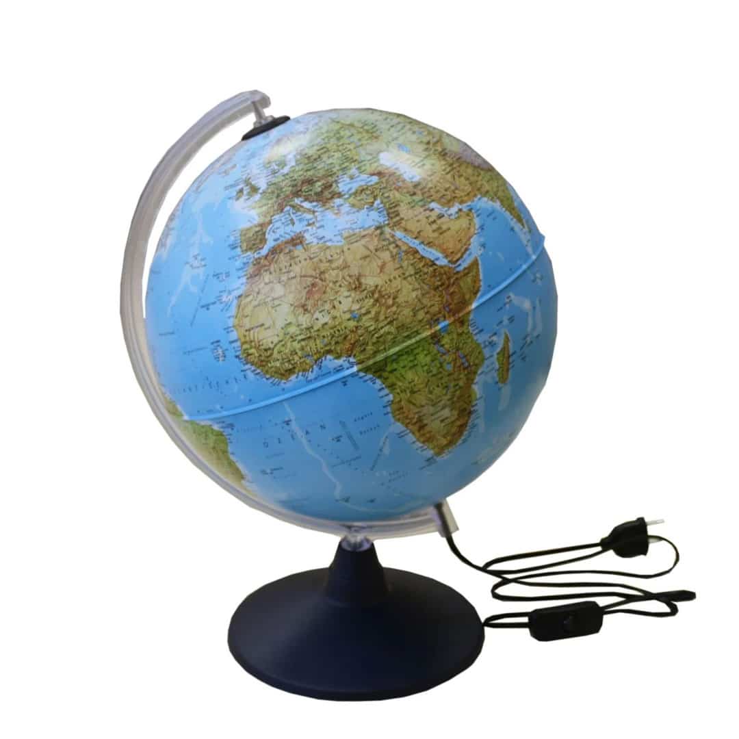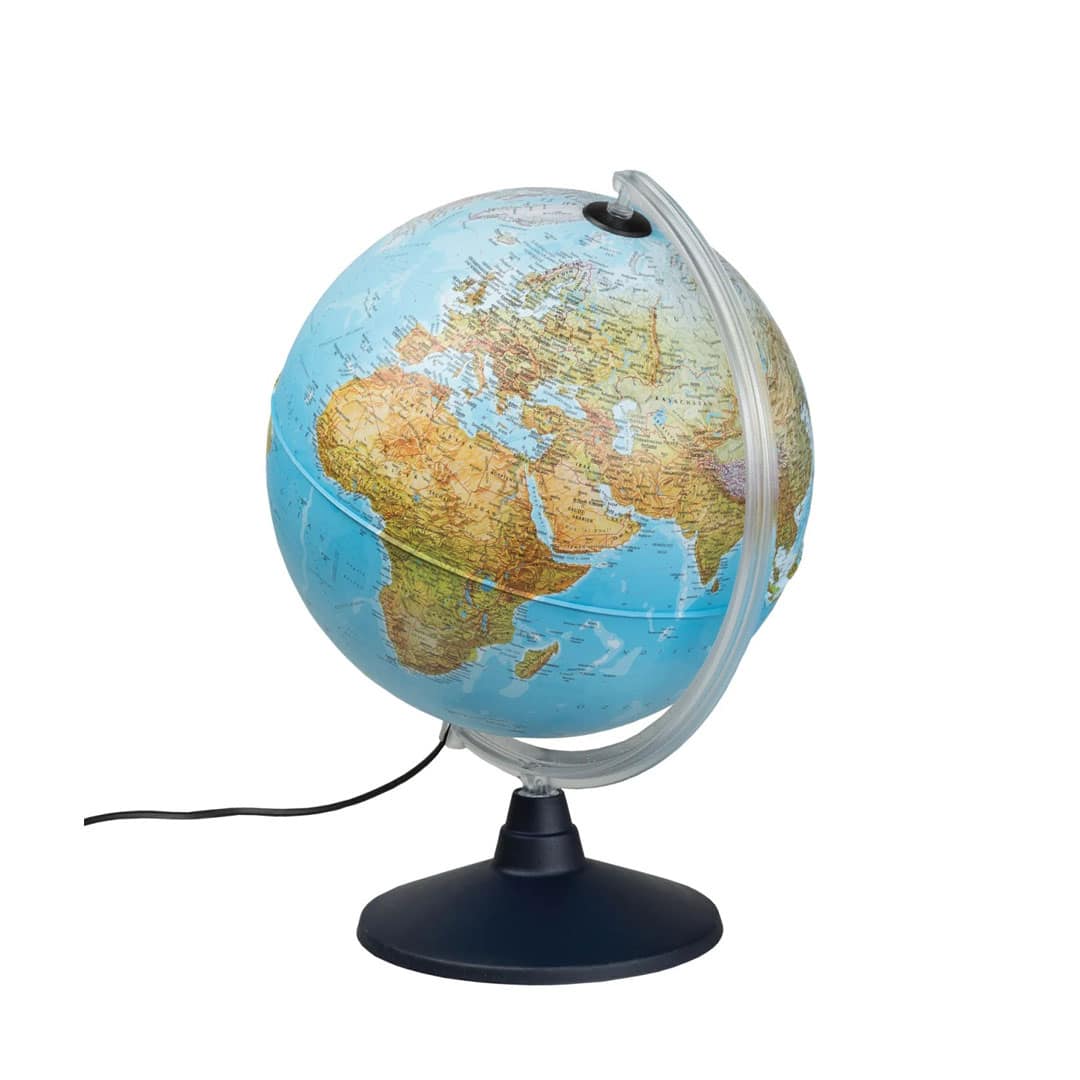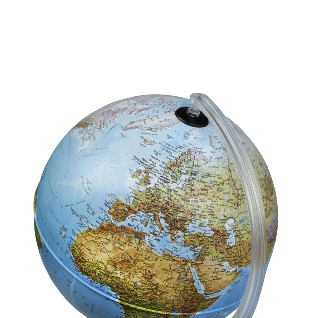 Dieser Leuchtglobus bietet zwei mögliche Kartenbilder: Wenn der Globus unbeleuchtet ist, zeigt er die detailgetreues physisches Kartenbild unserer Erde.