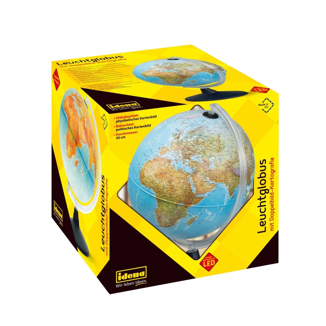 Leucht-Globus – Weltkarte mit Doppelbild-Kartografie