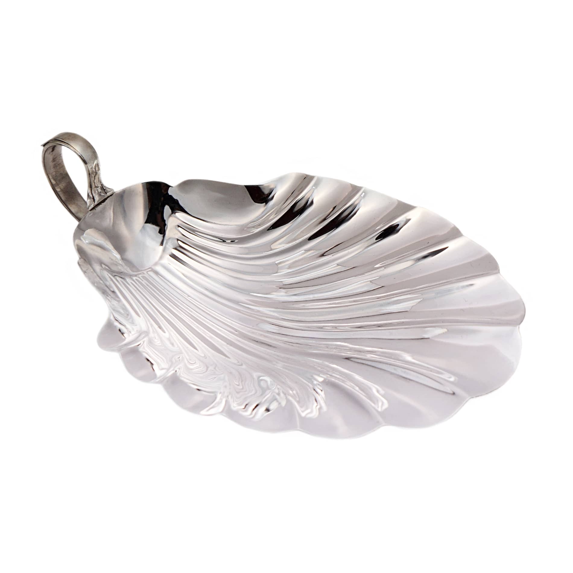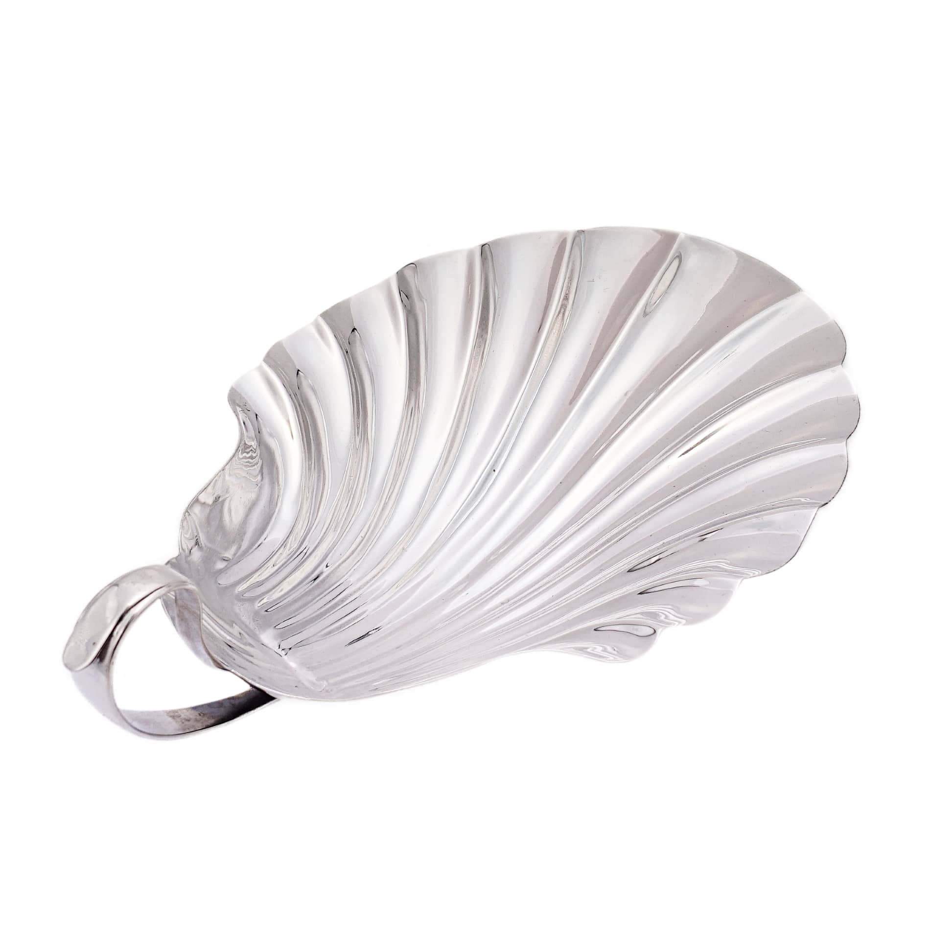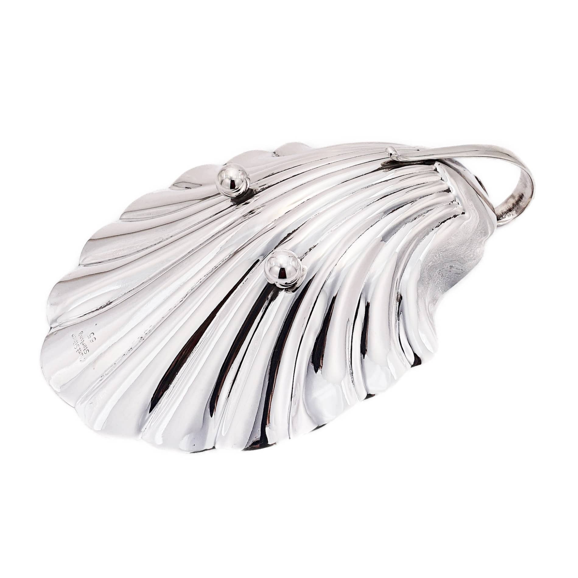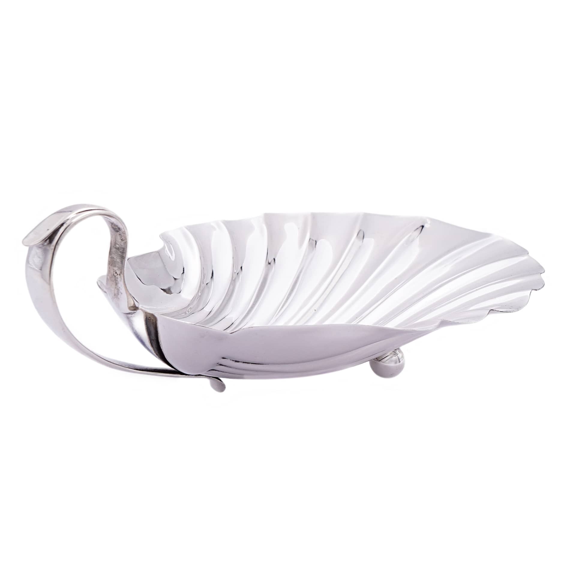 Das edle Silbermaterial verleiht der Schale einen glänzenden und zeitlosen Charme, während die Muschelform eine subtile Verbindung zur natürlichen Welt herstellt. Oft sind diese Schalen kunstvoll verziert, mit feinen Gravuren, zarten Reliefs oder akkuraten Randgestaltungen, die die Anmut und Komplexität der Natur nachahmen.