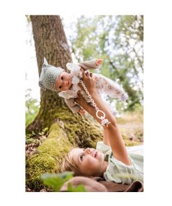 Diese Babypuppe „Lenchen“ hat blaue Schlafaugen, einen weichen Stoffkörper und bringt einen Schnuller zum Trösten mit. Als Outfit trägt sie einen supersüssen leichten Strampler mit Fuchs-Motiven, ein passendes Strick-Langarmshirt sowie eine niedliche Babymütze.