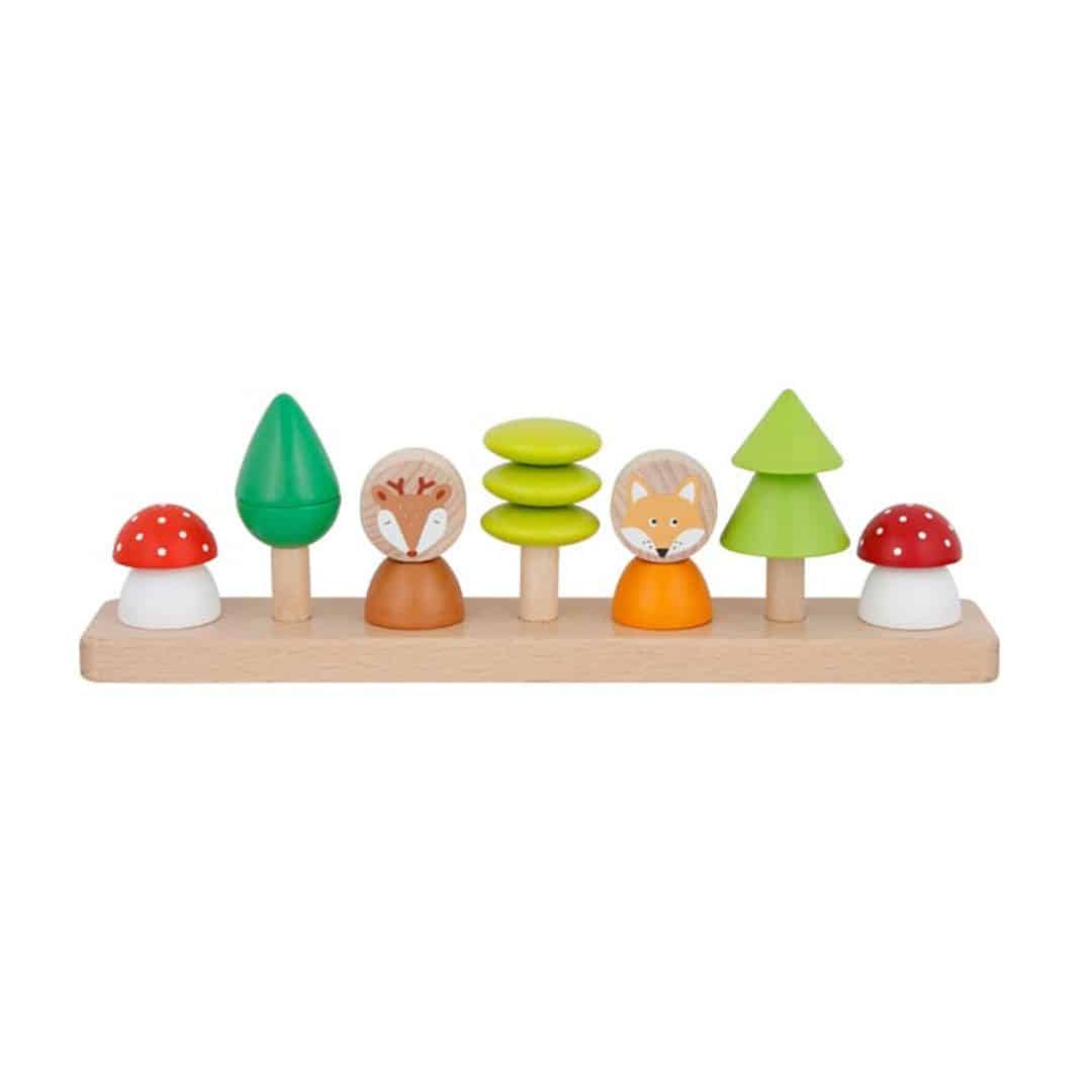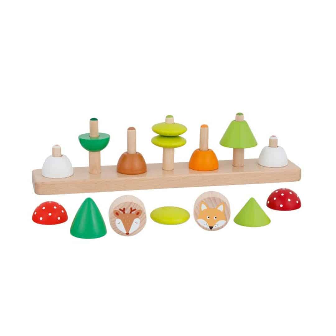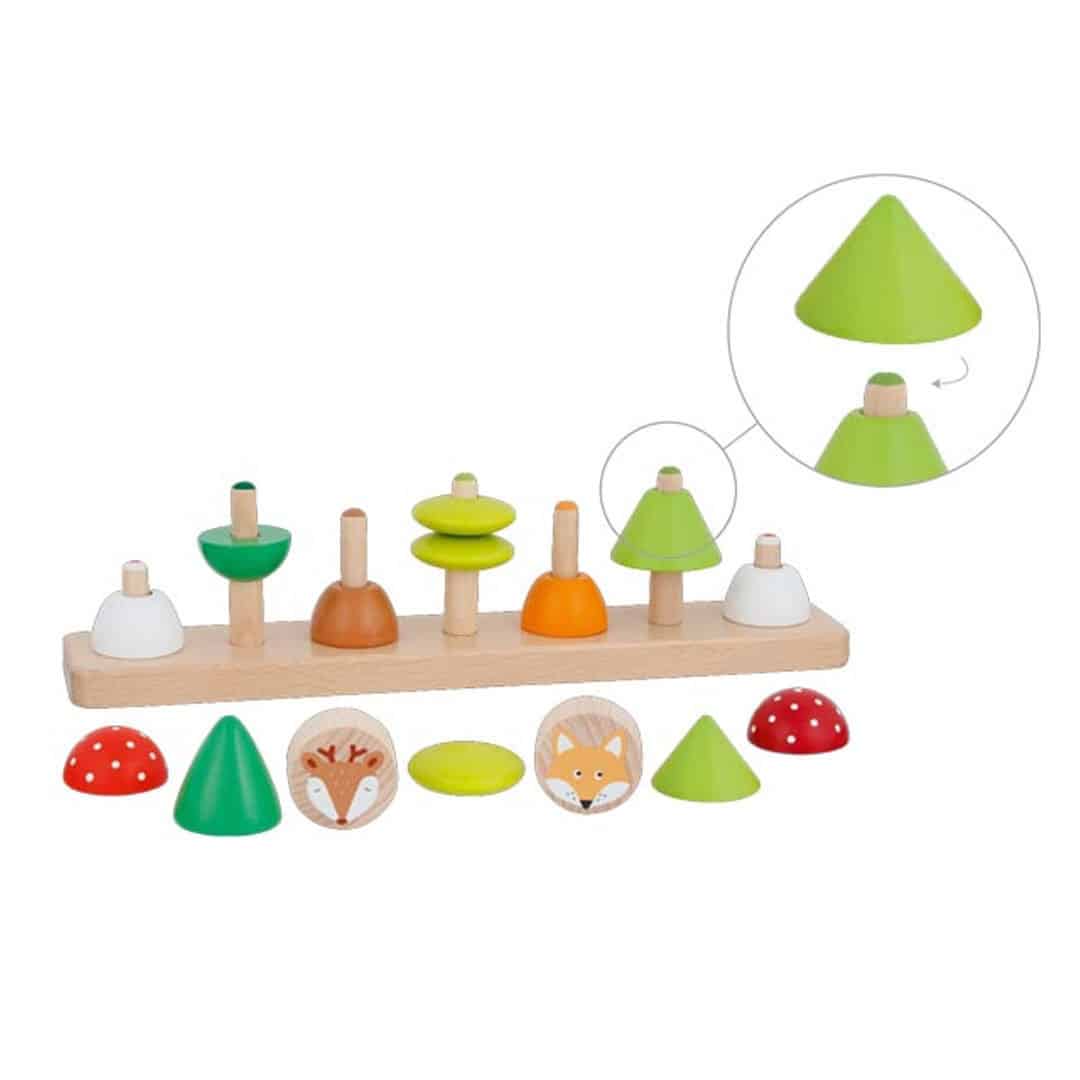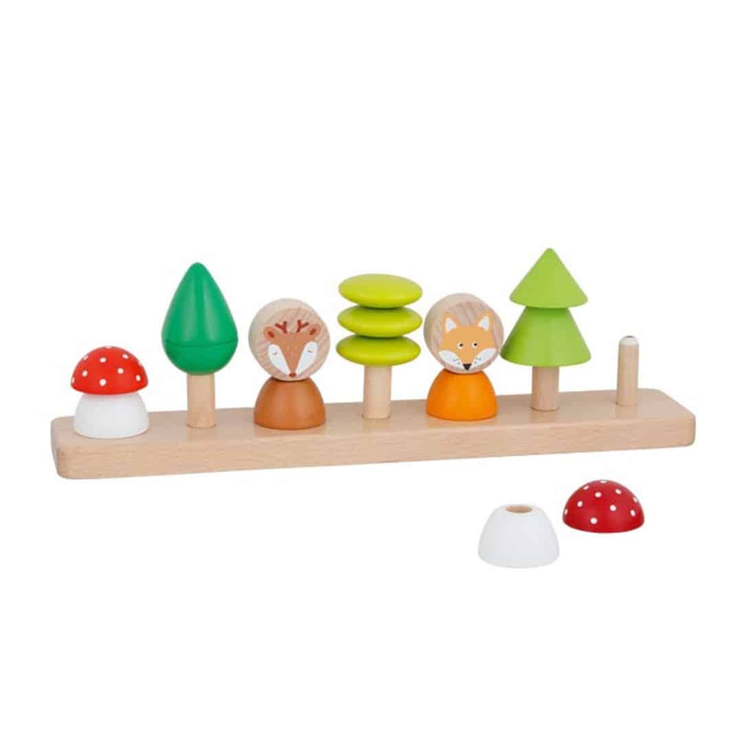 Farben- und Formensortierspiel „Kleine Waldfreunde“, 16-teiliges Sortierspiel aus Holz, mit Motiven aus dem Wald, von goki.