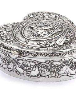 Silber Herz Dose – Konfektdose im Rokoko Stil, Hanau um 1930
