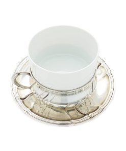 Silbertasse auf Unterteller mit Porzellaneinsatz – Otto Wolter